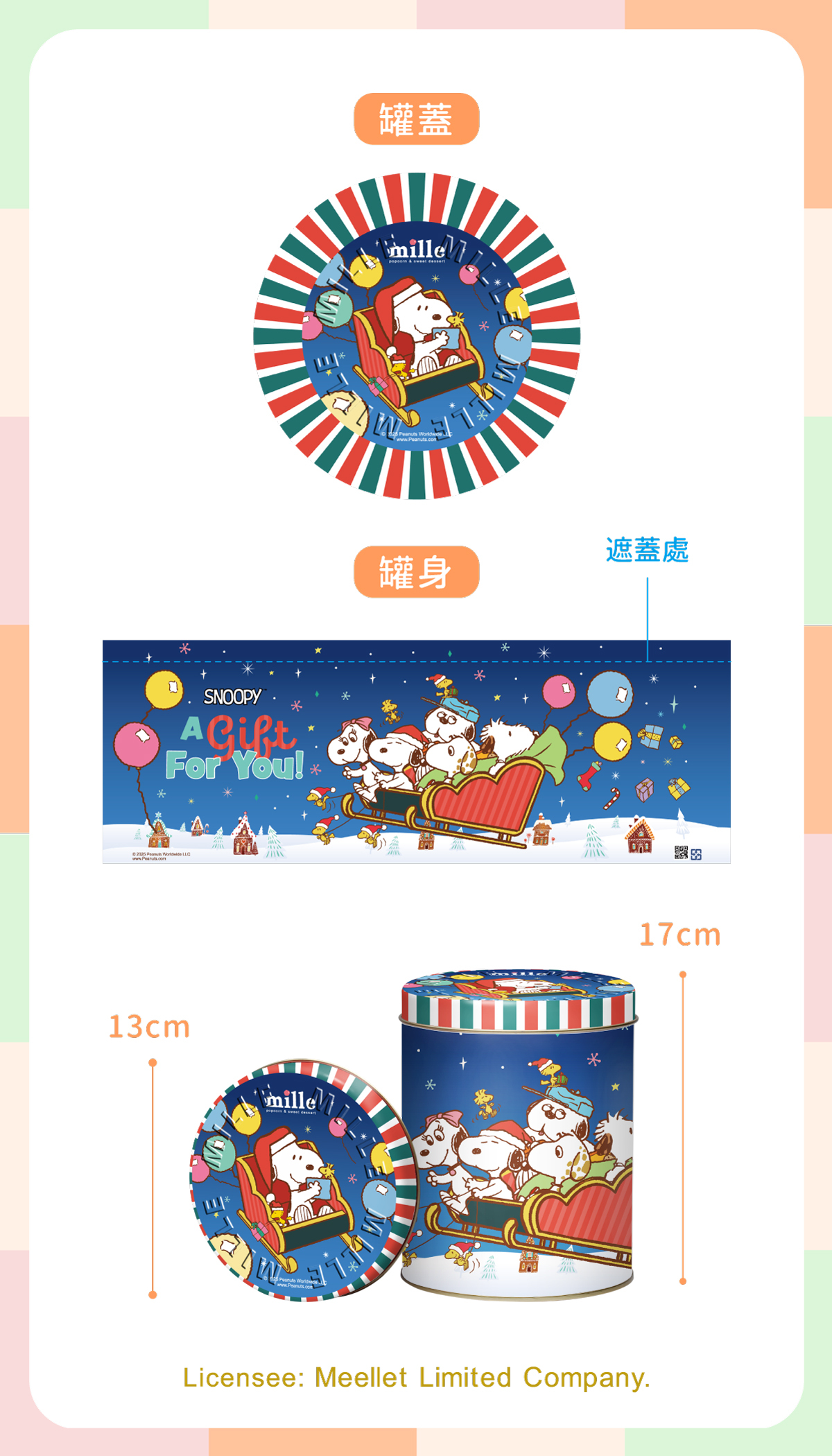 史努比藍聖誕家人雪橇罐爆米花