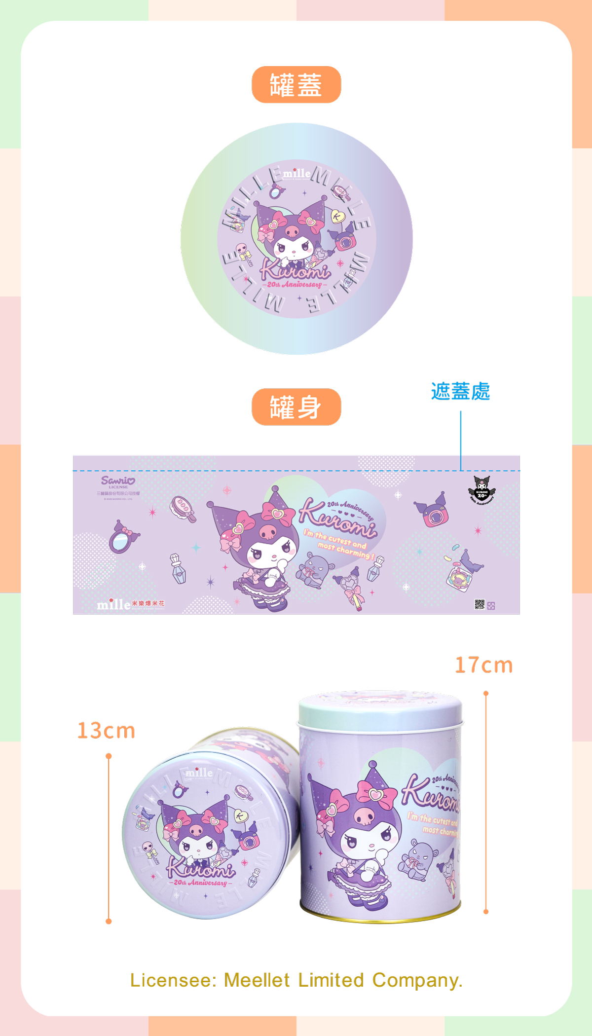 Kuromi20週年紫愛心翹屁股罐爆米花